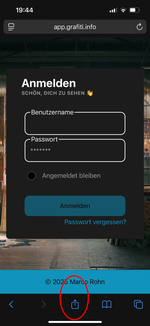 Sobald Sie über einen Account verfügen, loggen können Sie sich auf der Seite app.grafiti.info einloggen.