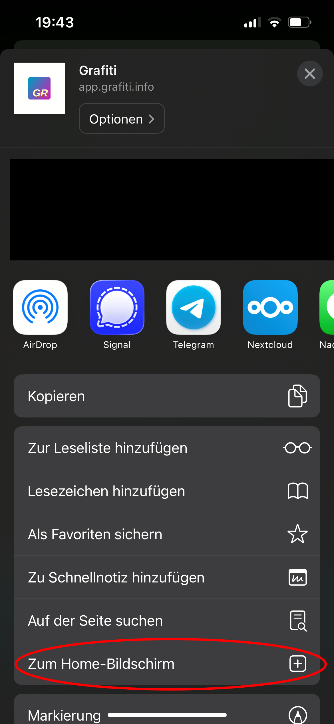 Bei der ersten Benutzung werden Sie aufgefordert, Grafiti als App zu installieren. Es empfiehlt sich, dieser Aufforderung nachzukommen.