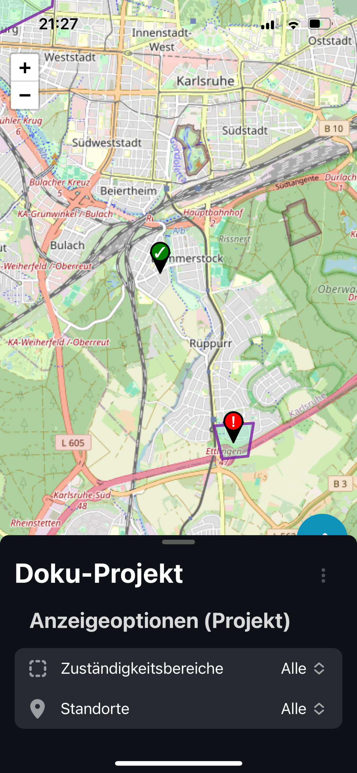 Zuständigkeitsbereiche können ebenso wie Standorte angetippt werden, um mehr Details zu sehen:
