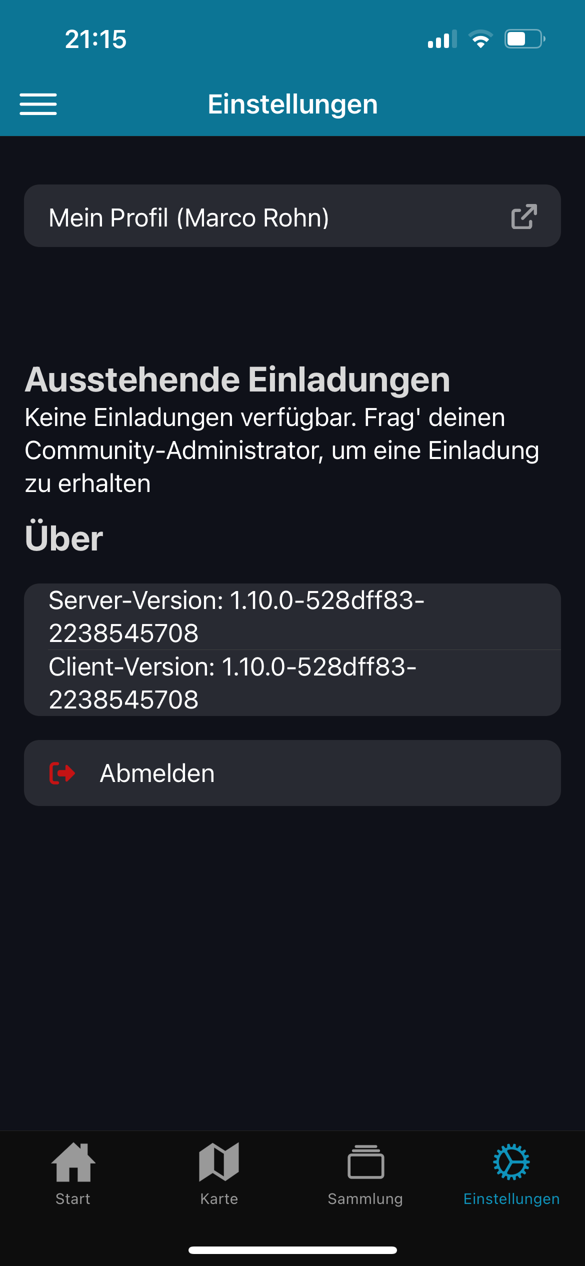 Hier tauchen Einladungen anderer Benutzer zu ihren Communities auf, die an Sie gesendet wurden. - “Über”
