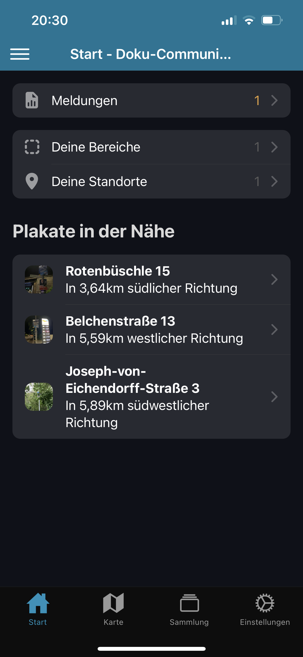 - Unter Plakate in der Nähe werden die nächsten Plakate angezeigt, denen Sie am nächsten sind. Die Entfernuns- und Richtungsberechnung aktualisiert sich, wenn Sie sich bewegen.