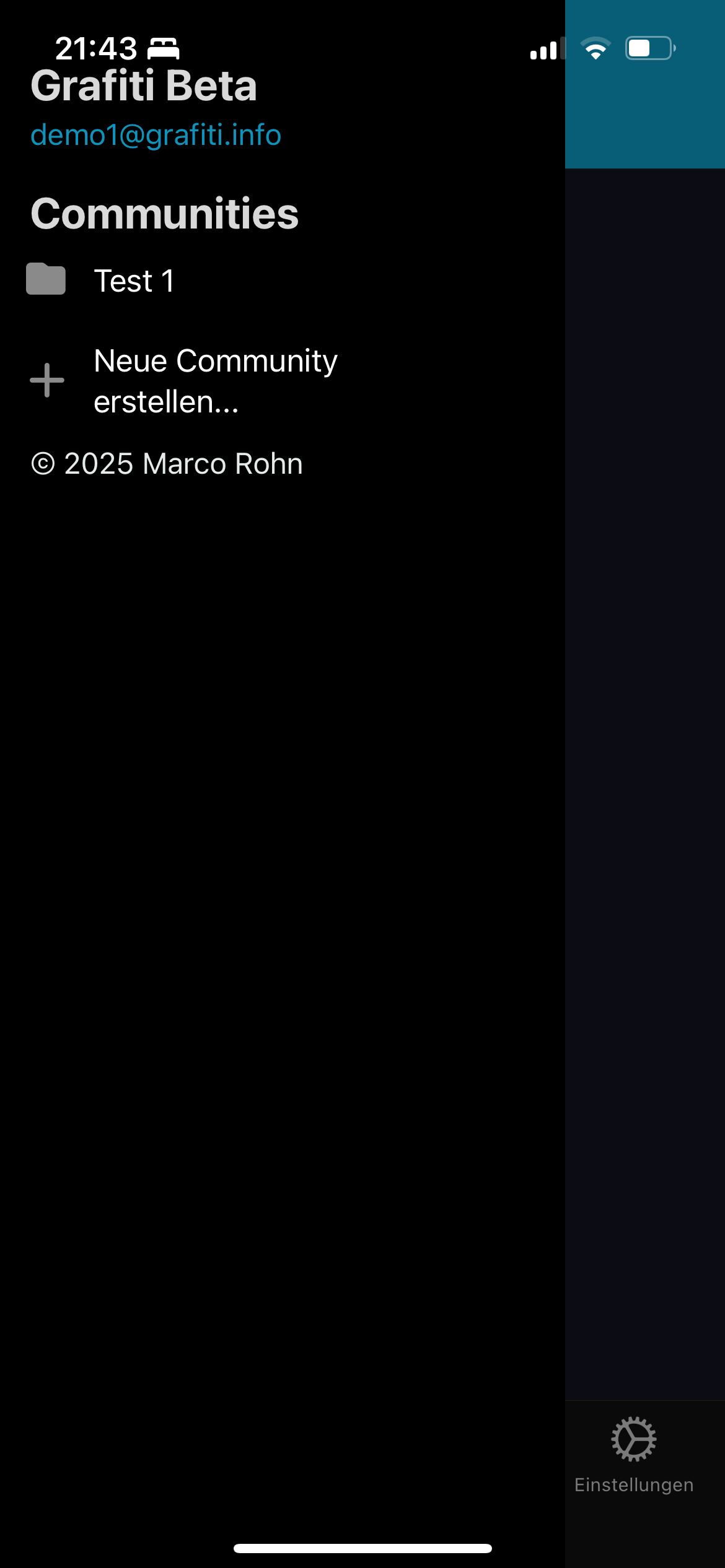 Tippen Sie auf den Haken bzw. das Kreuz, je nachdem, ob Sie die Einladung annehmen oder ablehnen möchten. Sobald Sie eine Einladung angenommen haben, sollte die entsprechende Community im Seitenmenü erscheinen. Ggfs. kann es aber auch notwendig sein, die App zu schließen und beenden und neu zu starten.